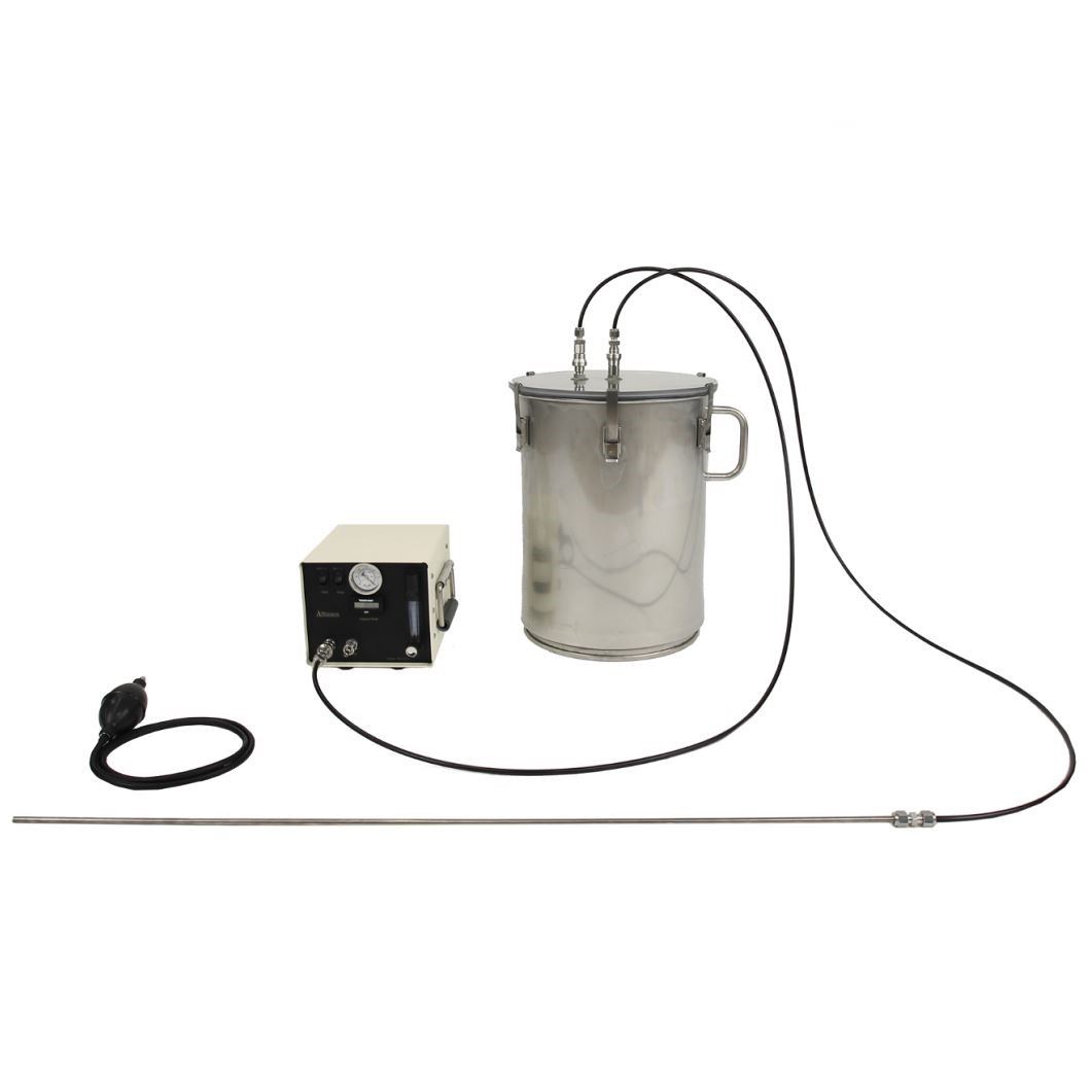 The M180 VacBag Sampler System takes an integrated gas sample, in accordance with the U.S. EPA Method 18, by evacuating the stainless steel airtight container fitted with a Tedlar® gas sampling bag, preventing the gas sample from coming into contact with the sample pump. The TBE Enclosures come standard with clear Lexan® lid, a 1/4-inch valved female quick connect, and a 1/4” male quick connect.